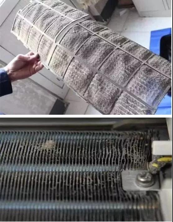 空调在使用一段时间后,由于静电作用和反复空气循环,会使滤光板、散热器、蒸发器翅片表面积聚大量灰尘及污垢,造成气流堵塞,致使制冷、制热效果下降,增加电耗、嗓音,甚至造成压缩机的损坏,增大故障率、降低空调的使用寿命。因不常清洗而累积在空调内的灰尘、污垢会产生异味,并且滋生细菌、螨虫等,危害人们的身体健康。