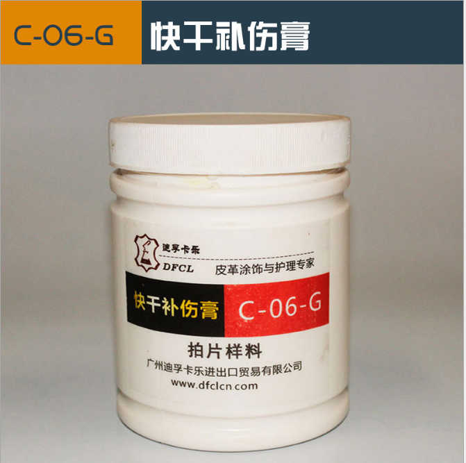 On the leather barbed injury, pinhole and surface roughness, such as a good cover injury effect, needle injury is not trapped, the leather is good. Fast drying, good operability. Buffing performance. The film is soft, does not affect the finishing touch. This product is used for the plate breakage, skin blisters, pits, scratches, and other brand, effectively cover the disabled, durable. After buffing the leather surface is more smooth, does not affect the feel, then good, drying speed.